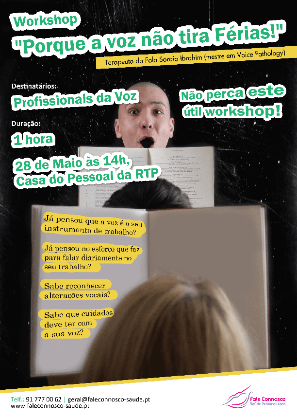 No dia 28 de Maio de 2014 a terapeuta da fala Soraia Ibrahim teve oportunidade de conduzir o workshop “Porque a Voz não tira férias” para profissionais da comunicação na RTP.